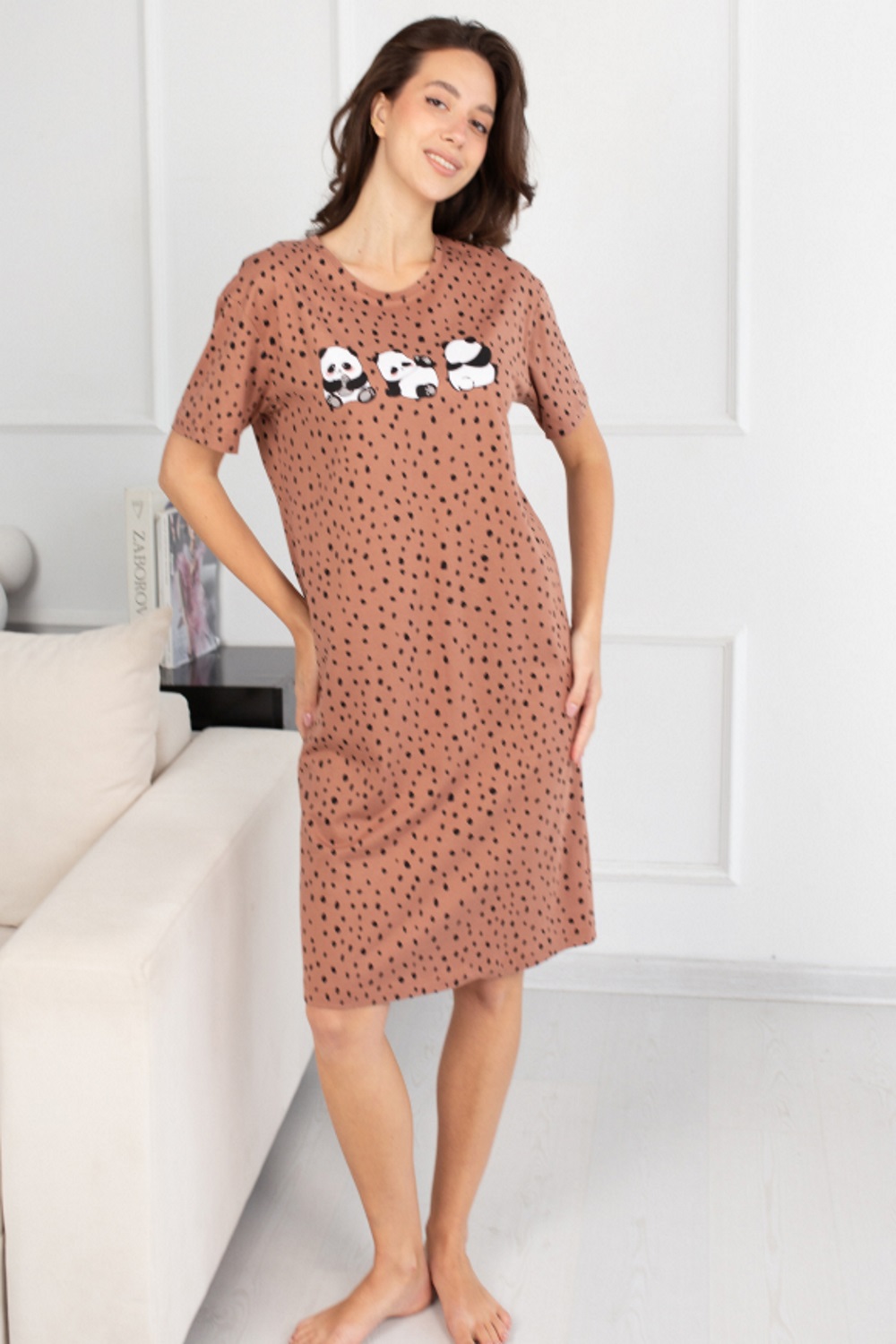Код: 00124863 Коллекция: - Артикул: 645338 Состав полный: Хл 100% Название: Сорочка ноч жен,645338,5с4652(набивка,корич,,панды), (46-158,164) Размер: 46 Рост: 158,164