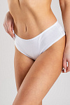 Белые хлопковые трикотажные женские трусики-бразильяна с заниженной линией талии и наполовину открытыми ягодицами. Изготовлены из высококачественного хлопкового кулирного полотна пенье. 95% натурального хлопка – это свободное дыхание кожи, отсутствие аллергических реакций, гигроскопичность и комфорт на весь день. Наличие эластана в составе полотна и тщательно проработанная конструкция трусиков обеспечивают идеальную посадку по фигуре. Верхний край трусиков обработан тесьмой-резинкой с помощью трёхукольного зигзага, срезы по ножкам – плоскими швами вподгибку. Ластовица двойная, из полотна основы. Прочные эластичные швы, текстурированные нити, специальные закрепки на швах – гарантия долговечности изделия. Цвет белый. Модель трусы s4991