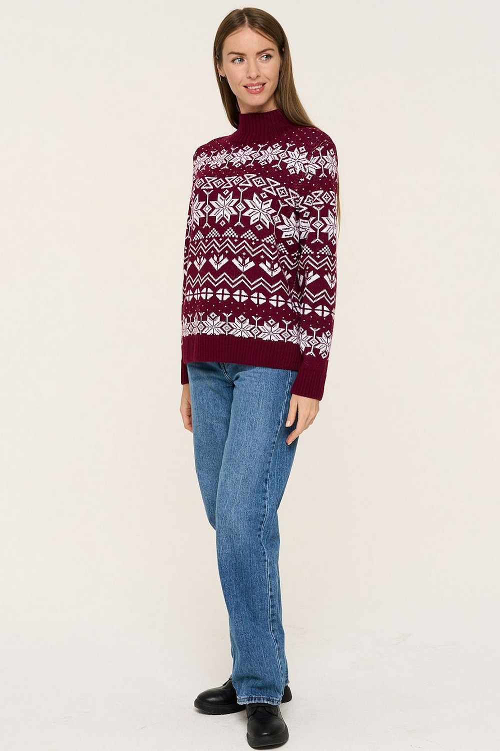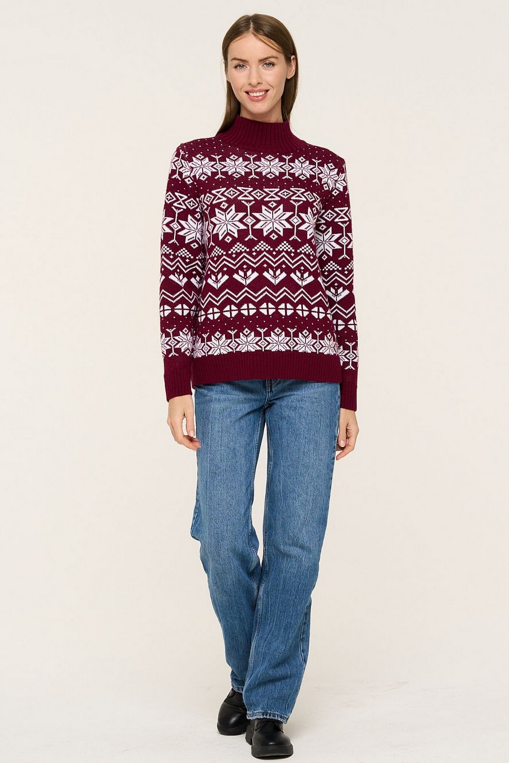 Код: 00120600 Коллекция: - Артикул: 5232-41304 Состав полный: Шер 30%, Пан 70% Название: Джемпер жен,5232-41304,-(винная груша/белый,бордо,,бел орнамент), (46-158,164) Размер: 46 Рост: 158,164