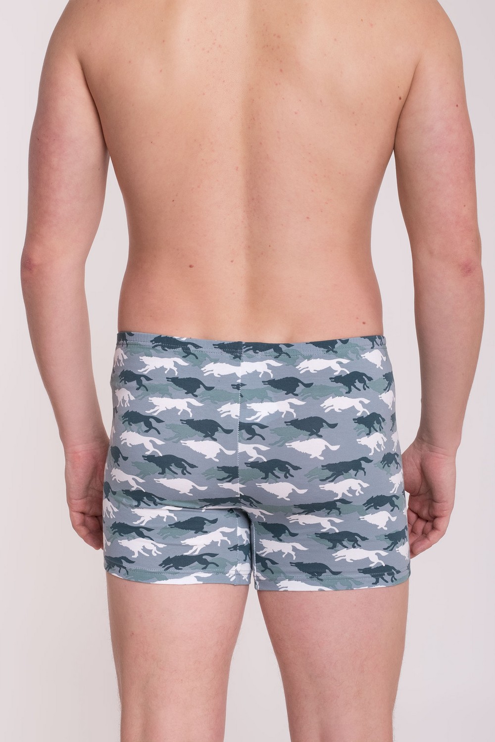 Удобные хлопковые трикотажные мужские трусы-шорты с разъёмной кнопкой на гульфике. Изготовлены из высококачественного кулирного полотна пенье, содержащего 94% натурального длинноволокнистого хлопка и 6% эластана, который обеспечивает комфортную посадку по фигуре и сохранение формы изделия. По верхнему срезу изделие обработано тесьмой-резинкой в закрытый срез. Ластовица широкая, двойная. Внутренний слой выполнен из полотна основы. Продуманный крой изделия гарантирует свободу движений и защиту особо чувствительных участков тела. Прочность нити и специальные закрепки на швах, качественные безопасные красители – залог долговечности изделия при соблюдении правил по уходу за ним. Неожиданный брутальный рисунок "Матерый" навеет солова из песни Владимира Высоцкого "... идёт охота на волков, идёт охота...". Модель трусы s7001