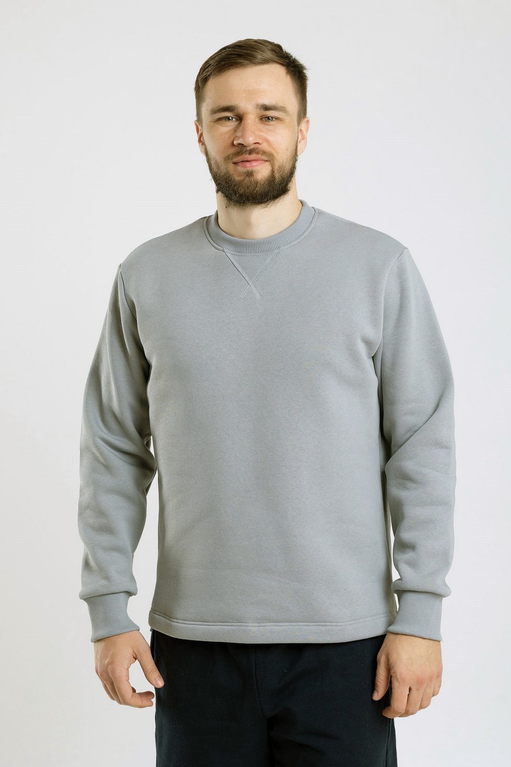 Теплый комфортный серый мужской свитшот, джемпер с круглой горловиной и рукавами на манжетах. Изготовлен из мягкого, уютного футерованного трикотажного полотна с начесом. Преобладающее количество натурального хлопка в составе полотна обеспечивает дыхание кожи, гигроскопичность изделия и безопасность для здоровья. Добавление полиэстера придает изделию формоустойчивость, прочность и стабильность цвета. Аккуратные прочные швы, эластичные нити высочайшего класса, безопасные красители – залог долговечности джемпера при условии соблюдения правил по уходу, указанных на его ярлыке. Модель джемпер s7946