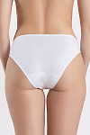 Трусики-классика с завышенной линией талии. Передняя часть изделия выполнена из трикотажного полотна в комбинации с кружевом.