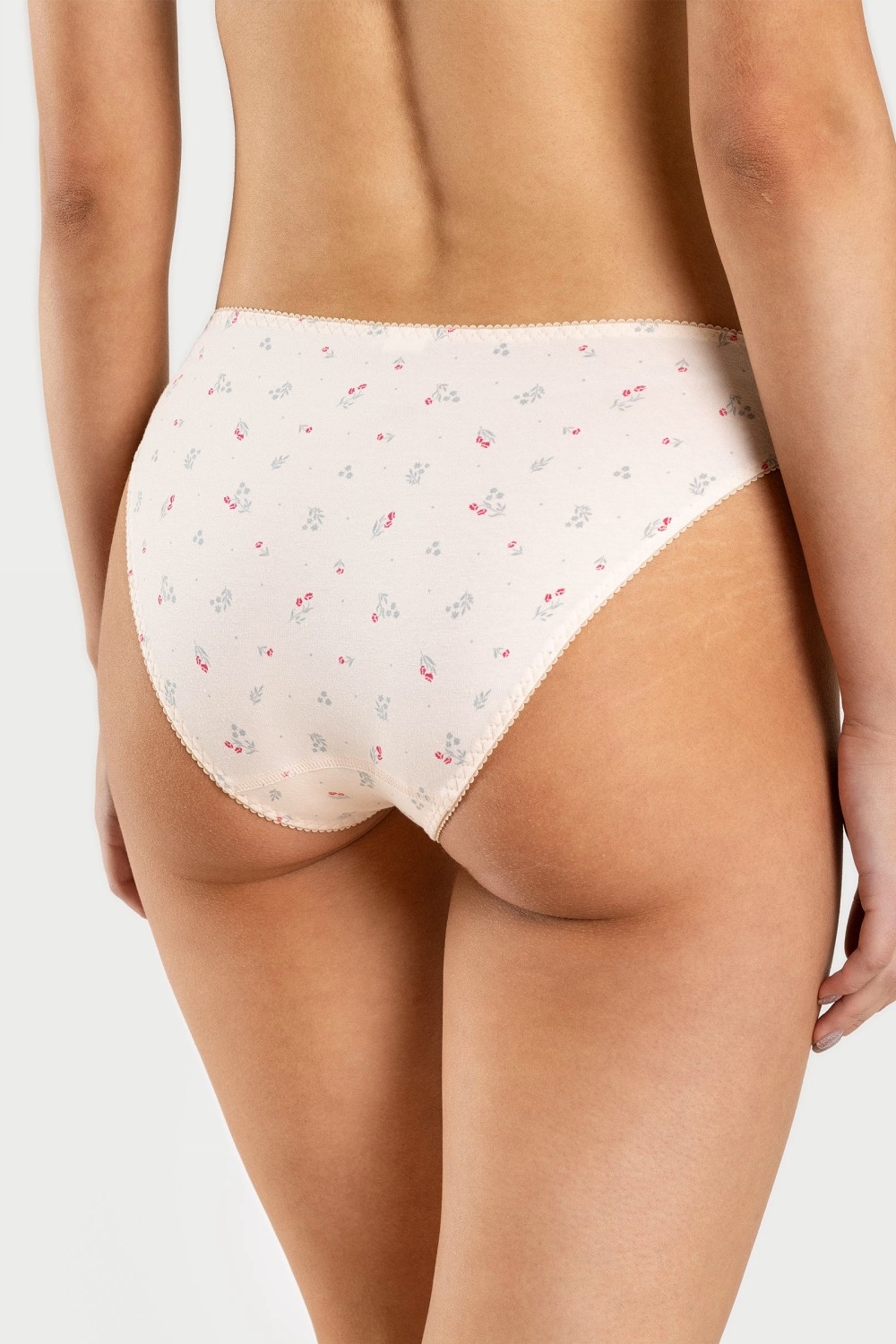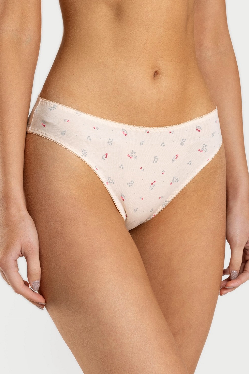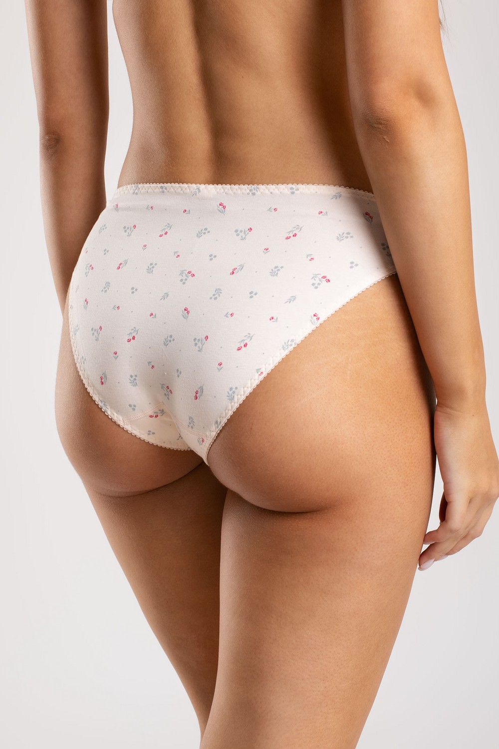 Классические женские трусики с завышенной посадкой и нежной окантовкой. Все срезы изделия обработаны тесьмой-резинкой с помощью трёхукольного зигзага. Эластичная тесьма-резинка обеспечивает надежную фиксацию на бедрах, при этом не сковывает движения. Высокая линия бедер подчеркнет стройность ваших ног. Простота и элегантность кроя продемонстрирует все достоинства фигуры. Трусики изготовлены из высококачественного хлопкового трикотажного кулирного полотна пенье. Они гигроскопичны, обеспечивают оптимальный теплообмен и легкий уход. Благодаря добавлению лайкры прекрасно держат форму. Нежные мелкие цветочки на светло-персиковом фоне трусов будут радовать ежедневно при соблюдении правил по уходу за трикотажным бельем. Прочность нити и специальные закрепки на швах, качественные безопасные красители – гарантия долговечности изделия. Модель трусы s4123