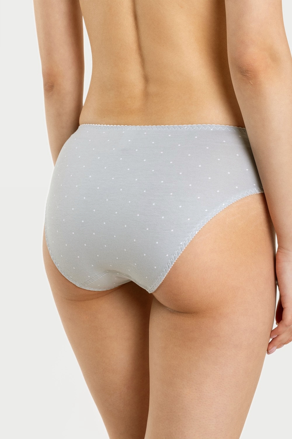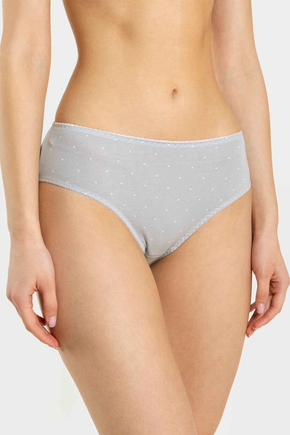 Удобные женские трусы-слипы на завышенной талии – это ежедневные комфорт и забота о вашем здоровье. Высококачественное трикотажное кулирное полотно из натурального хлопка (95%) гигроскопичное, гипоаллергенное, воздухопроницаемое, приятное на ощупь. Наличие эластана в составе полотна и тщательно проработанная конструкция трусиков обеспечивают идеальное облегание по фигуре. Все срезы изделия обработаны тесьмой-резинкой трехукольным зигзагом. Ластовица двойная, из основного полотна. Мягкие швы, прочные нити и специальные закрепки – гарантия долговечности изделия. Белые крапинки по серому фону трусиков сохранят свою привлекательность при соблюдении требований по уходу за трикотажными изделиями. Модель трусы s4223